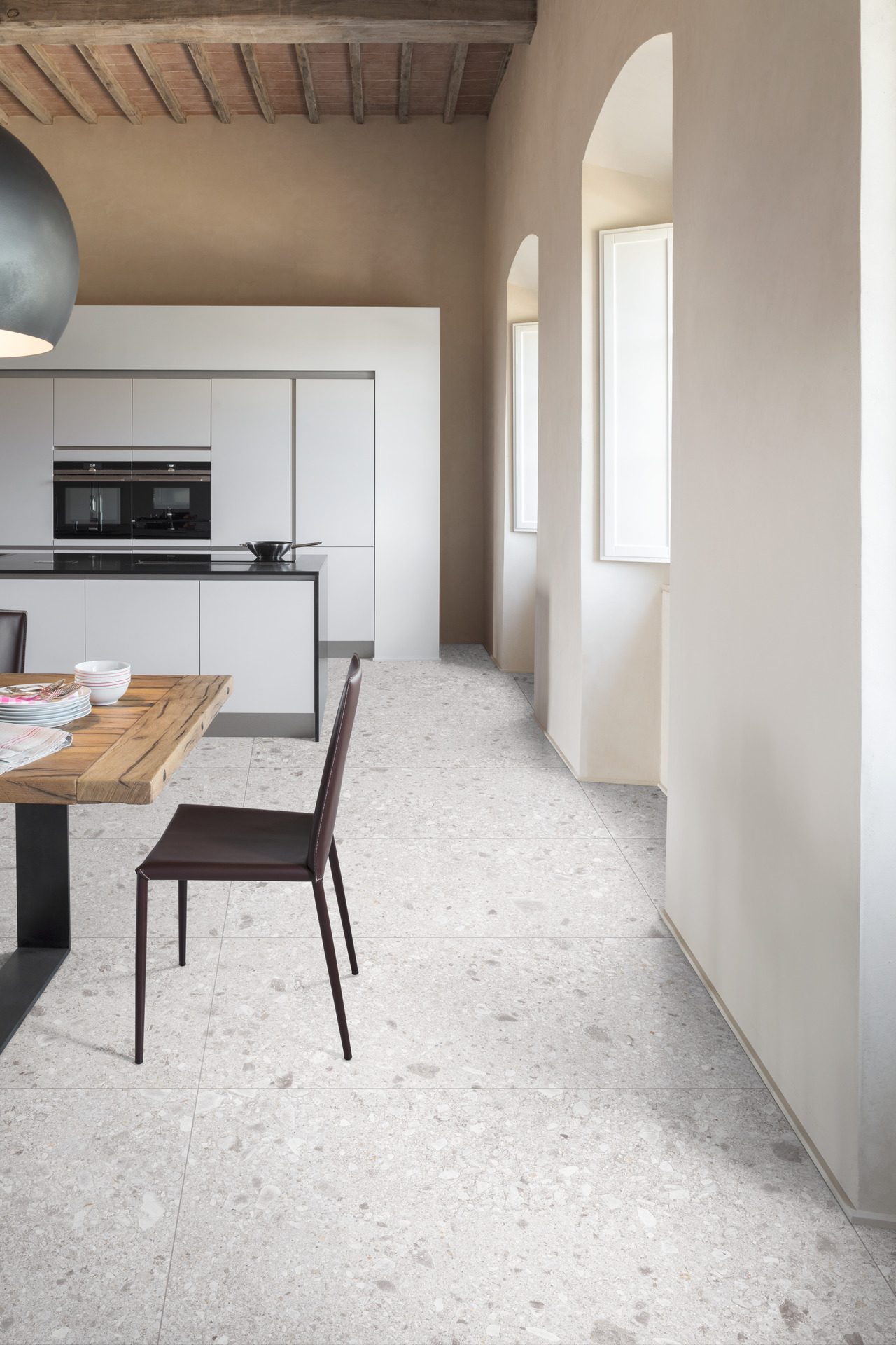 Al diseñar una cocina de colores neutros, el suelo y los revestimientos tienen un papel fundamental: junto con la selección atenta del mobiliario, la elección de los azulejos adecuados ayuda a definir la atmósfera para conseguir un ambiente armonioso y acogedor.