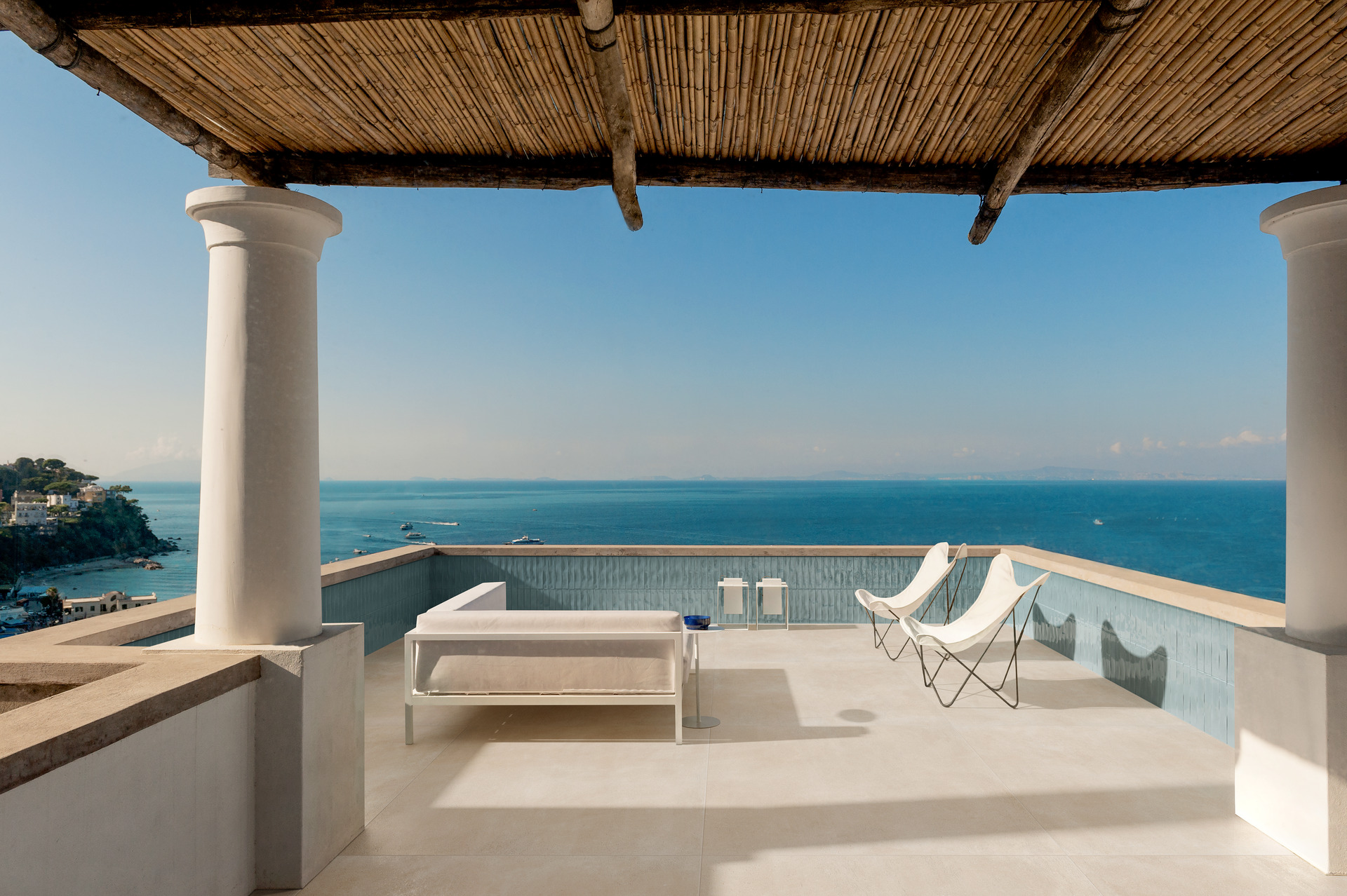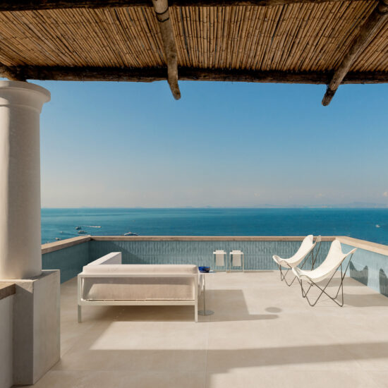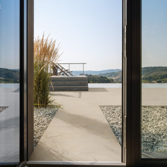 Coordinar los colores y los acabados con el entorno exterior significa elegir superficies capaces de dialogar con la luz natural, con la vegetación circundante y con los materiales de los muebles. Los colores claros y la imitación de la piedra amplifican la luminosidad de los espacios, mientras que las tonalidades más profundas y las texturas matéricas crean atmósferas más íntimas y acogedoras. La posibilidad de extender la pavimentación del suelo al interior —y viceversa, de dentro afuera— proporciona continuidad visual entre el interior y el exterior, haciendo que la experiencia habitacional sea más fluida y coherente.