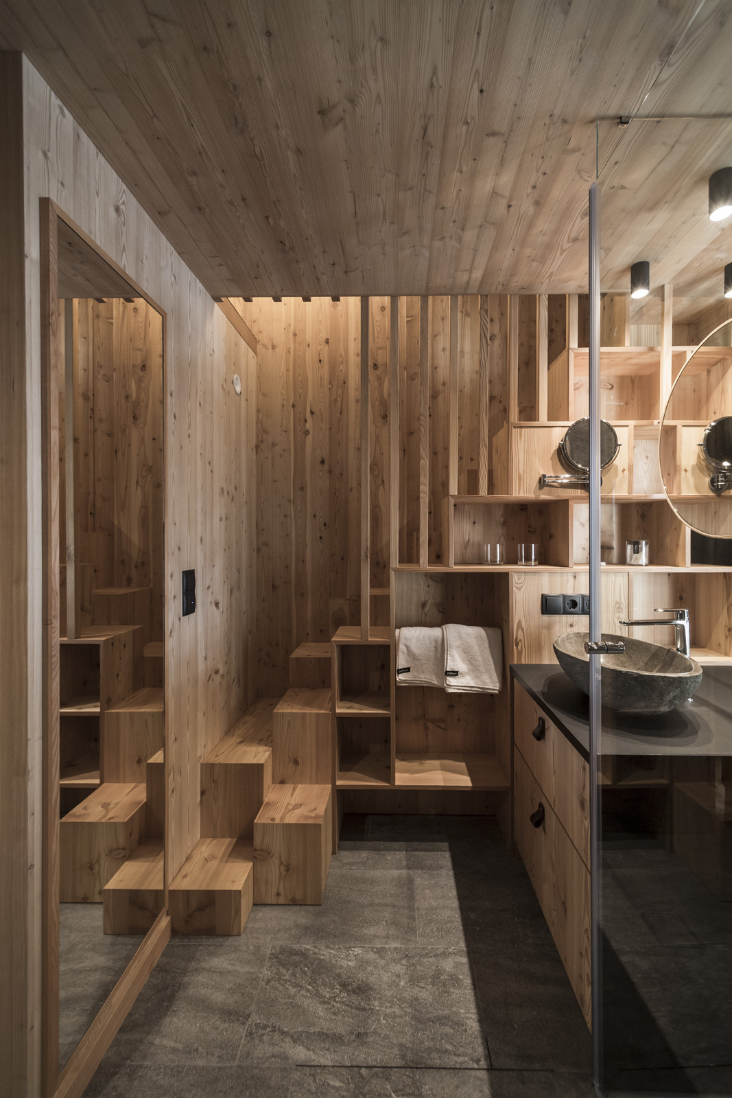 La sostenibilidad es un tema que incluye otros muchos. Solo por citar algunos: uso de materiales de bajo impacto medioambiental, reducción del consumo de suelo, incentivo a la movilidad sostenible, empleo de trabajadores locales, flexibilidad de los espacios, reducción de la contaminación lumínica, reutilización de volúmenes, integración de la economía circular, limitación de la radiación solar… Por ejemplo, la urbanización alpina de Zallinger, construida en 2017 en Alpe di Siusi (Bolzano, Italia), a dos mil metros de altitud, aborda cuestiones como la exclusión del tráfico, la reducción de la superficie de las habitaciones, aun manteniendo el precio de referencia dentro de la categoría de la hostelería de lujo, y el sistema constructivo por entero de madera. O el proyecto Floris, realizado en 2020 en Siusi, que se integra en un parque histórico de alta calidad paisajística; para la preservar la integridad del mismo separamos las nuevas suites mediante pilotis, reinterpretando el tema de la casa en el árbol. Para terminar, el proyecto Apfelhotel Torgglerhof, terminado en 2023, retoma la arquitectura tradicional del Tirol del Sur en clave contemporánea: desde la disposición volumétrica de la masía con dependencias, en la que cada volumen, con una función propia, se integra en el paisaje, hasta el patrón de la cruz de San Andrés de los graneros surtiroleses retomado en las fachadas de las suites con jardín.