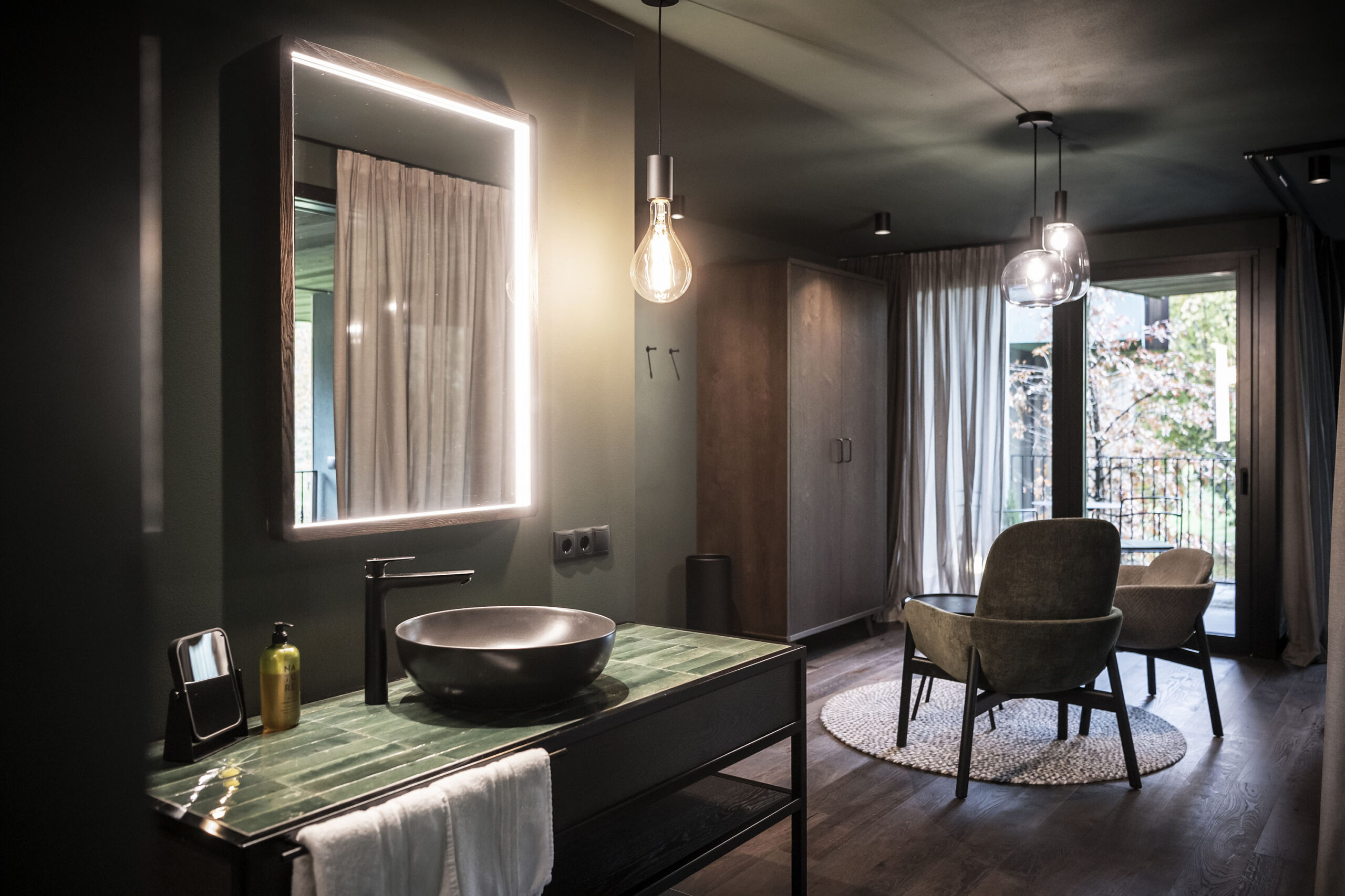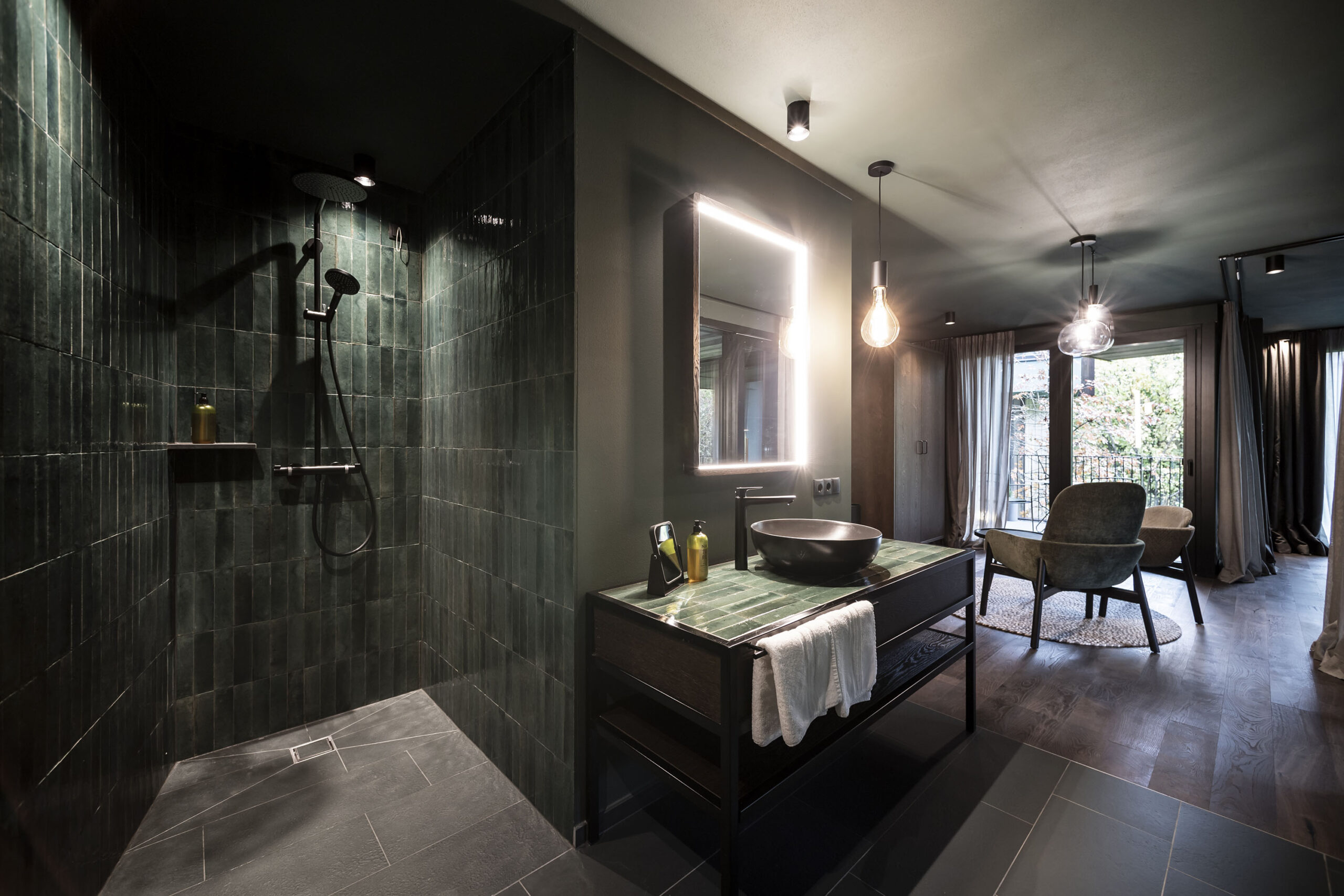 El criterio principal es la coherencia con el concepto del proyecto. No tenemos unos materiales que debamos utilizar a la fuerza, sino una amplia gama de posibilidades (en el estudio disponemos de una sala de materiales de 60 m2). Otro criterio es la forma en que se utilizará el material. Hay opciones que se descartan de por sí, como la moqueta en el restaurante, que no favorece la limpieza, y combinaciones que siempre resultan funcionales, como los azulejos o la piedra en las áreas de bienestar. Asimismo, los criterios de sostenibilidad en la selección de los materiales son diversos. Por ejemplo, los azulejos son casi indestructibles y, además, se fabrican en Italia a través de una cadena de producción local. O la madera presenta una cadena de producción con una baja huella de carbono, menor consumo de agua y mayor capacidad de regenerarse. Utilizamos pinturas al agua y reducimos al mínimo la presencia de PVC y plástico.
