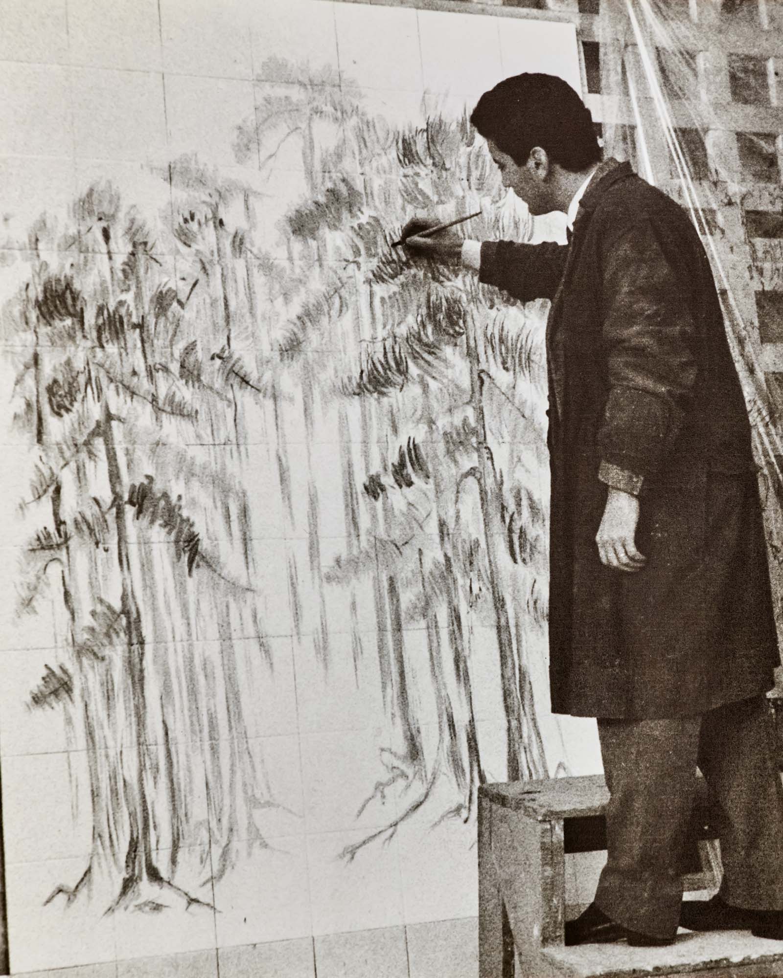 Podría parecer frágil, pero combate diariamente ataques aéreos de todo tipo, salpicaduras de aceite incandescente y tazas voladoras. De aspecto anguloso, revela una personalidad traviesa que difunde mensajes repetidos que nos conducen a jardines floridos y habitaciones psicodélicas.