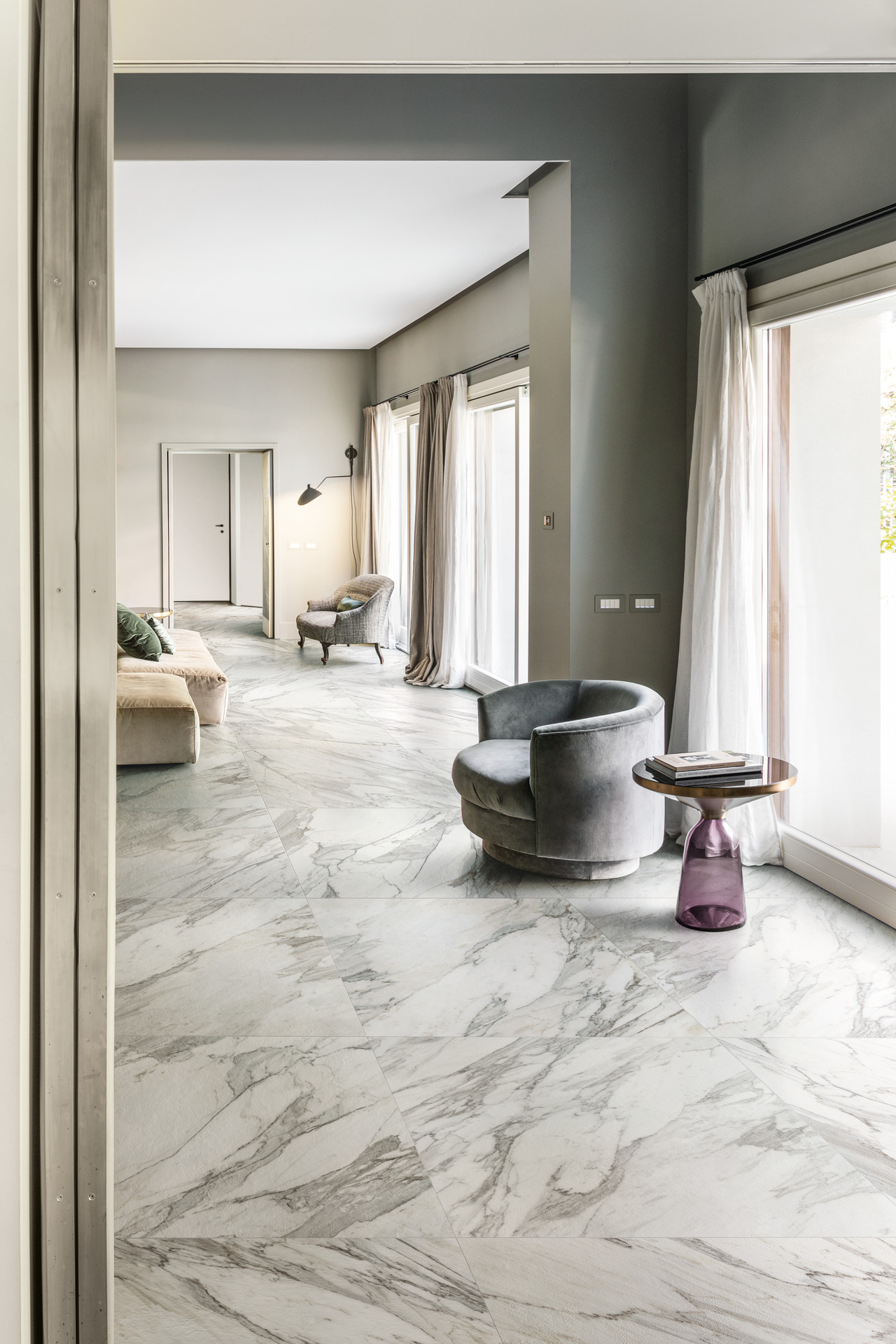 El mármol, que desde siempre es símbolo de elegancia y pureza, se reinterpreta en la colección Fabula. Esta extraordinaria serie de gres porcelánico engloba las variedades más insólitas del mármol, desde los blancos más sofisticados hasta las tonalidades cálidas del beige, y las reinterpreta en clave contemporánea.