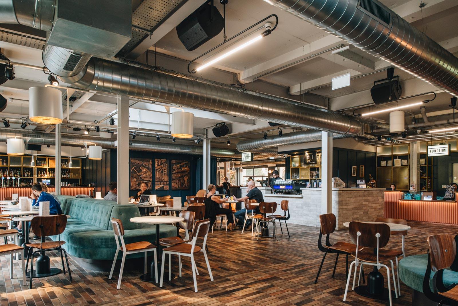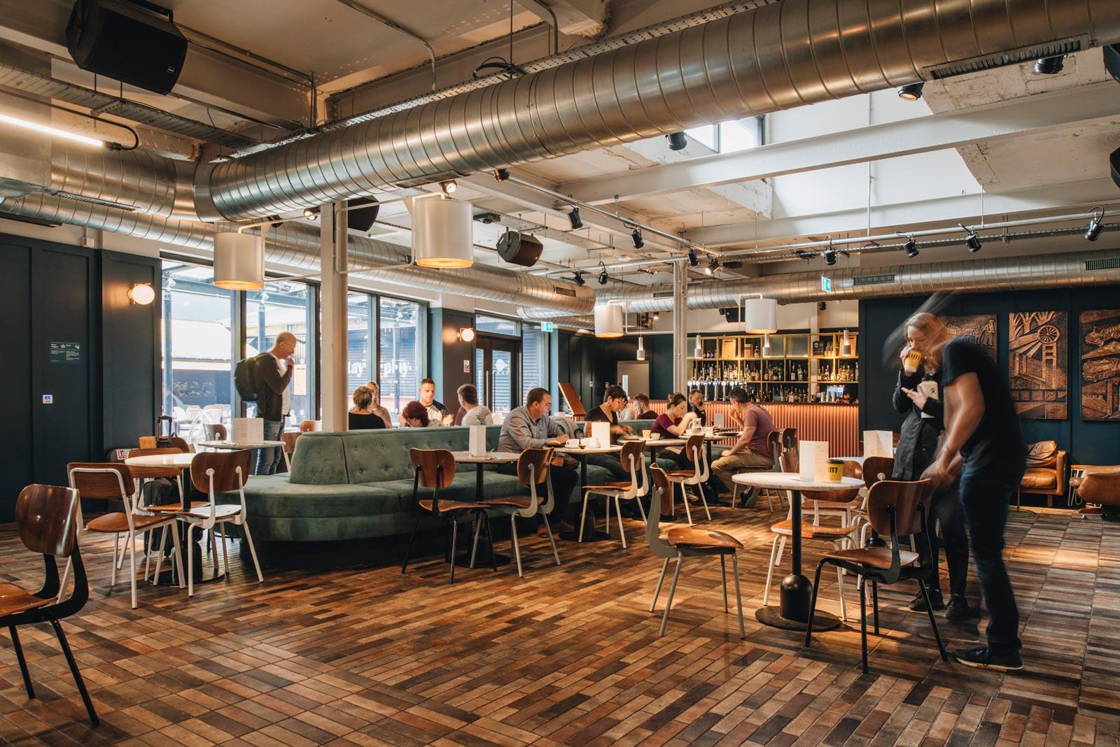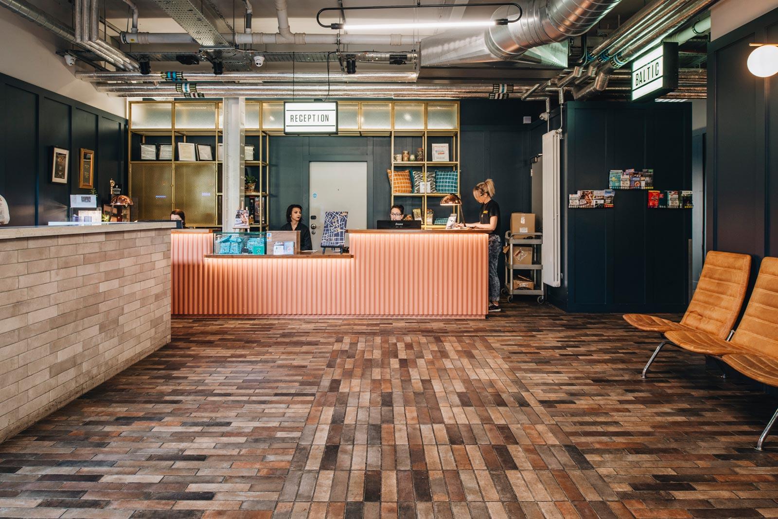 Lo que aporta un carácter marcadamente industrial al Hotel Bullitt es precisamente el suelo de ladrillos, con sus matices de tonalidad Terracotta: se trata del gres porcelánico Terramix de Marazzi. Disponible en varios colores (Beige, Bianco, Marrone y Nero), en este proyecto se ha optado por utilizar Terramix en las variantes marrón y blanco, para revestir completamente el pavimento y parte de las paredes.
