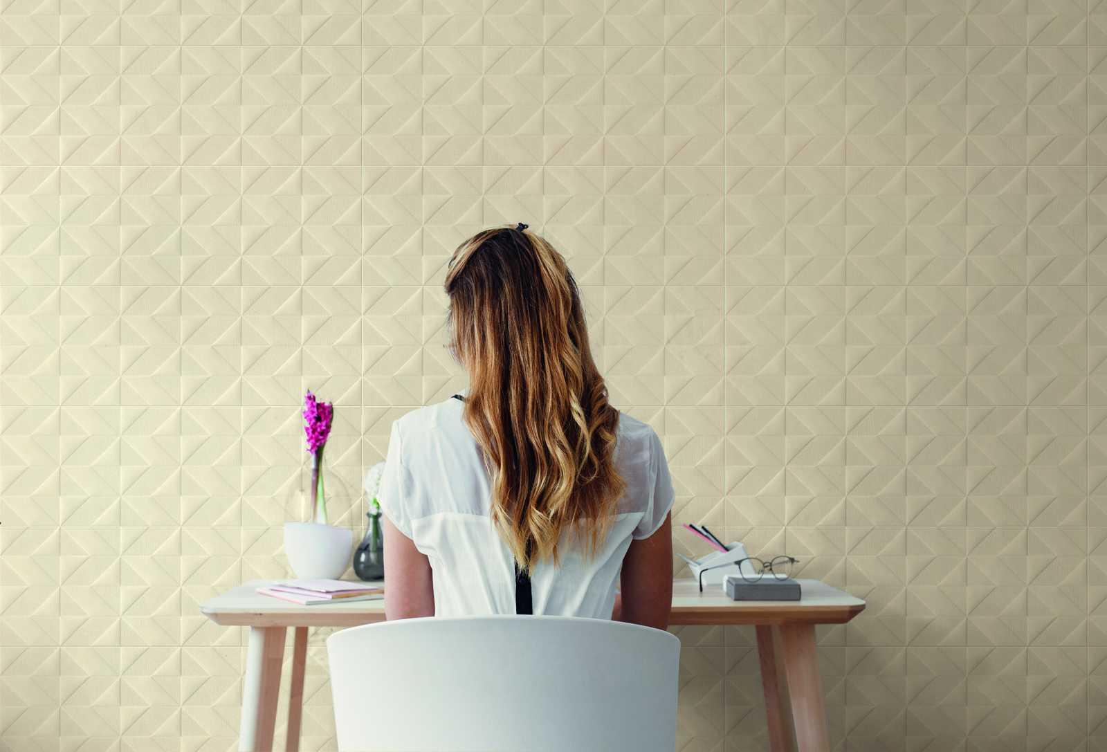 La estructura Tetris, caracterizada por presentar pequeños volúmenes geométricos tridimensionales enriquecidos por una textura que imita la tela, se encuentra disponible en las siete variantes cromáticas que componen la colección y que resulta especialmente adecuada para revestir paredes enteras.