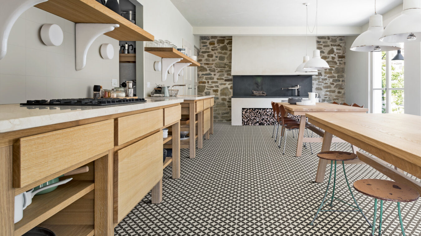 La colección Cementum articula la imitación del cemento en una amplia gama de tonalidades e incluye azulejos hexagonales y motivos originales para personalizar las paredes y el suelo de la cocina con estilo.