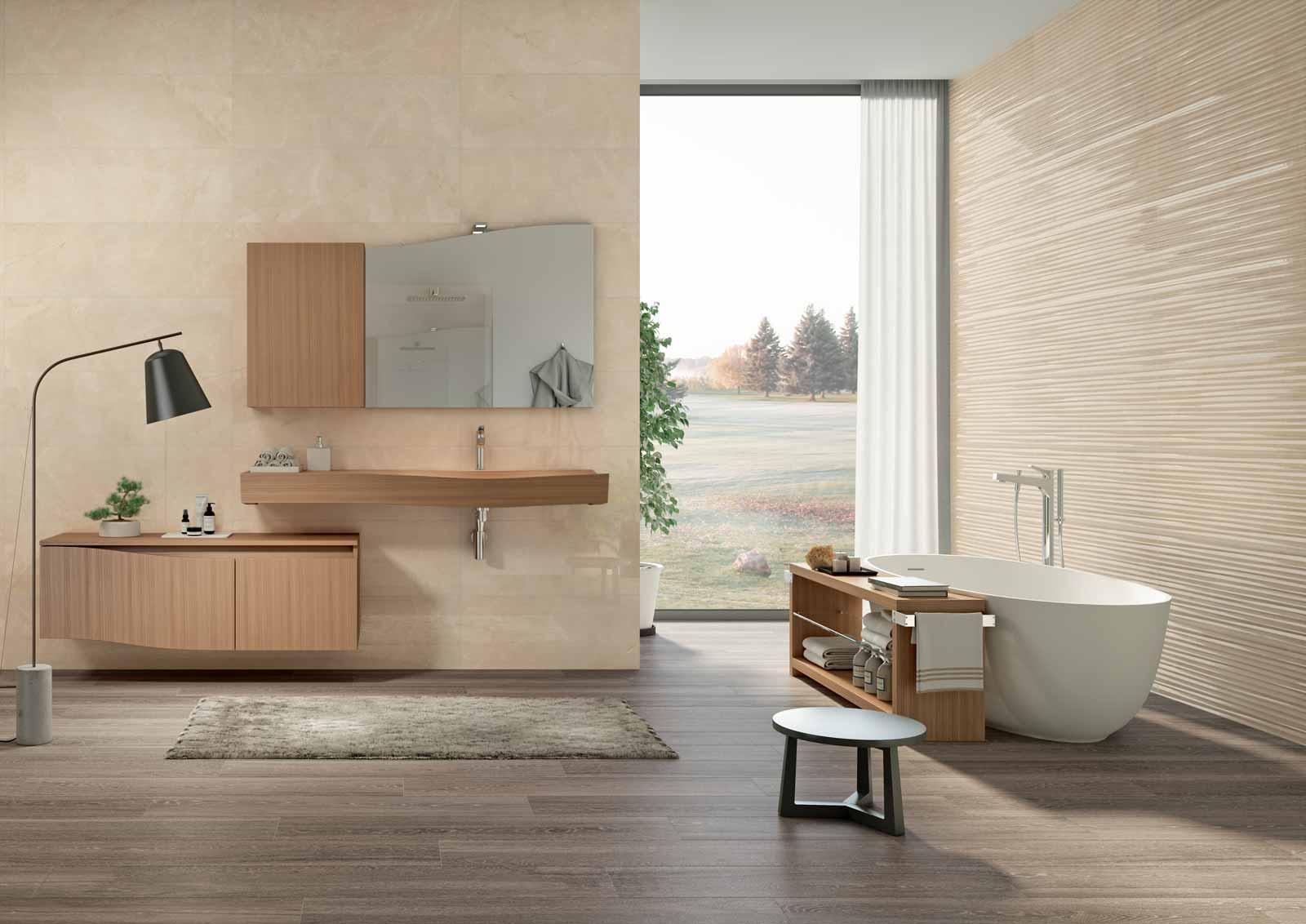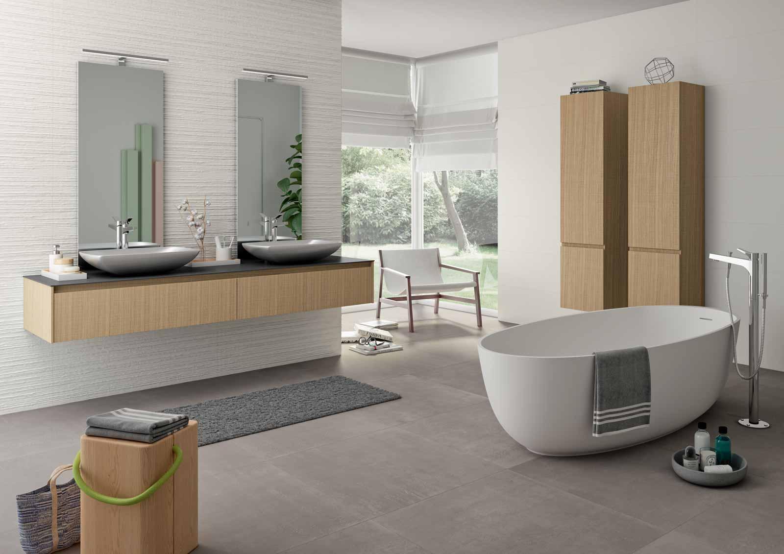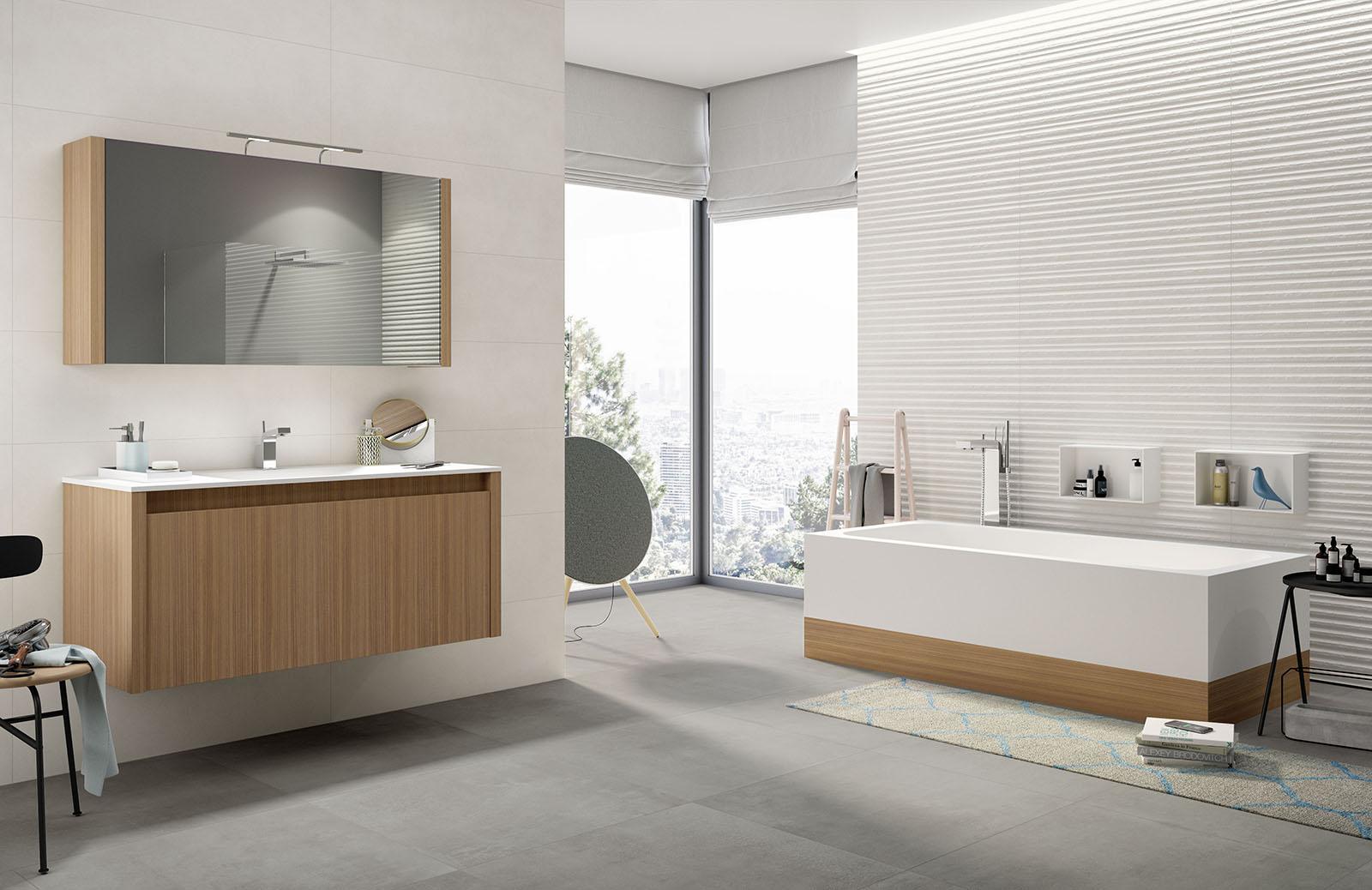 Son cerámicas de grosor reducido y de formato grande: la colección Essenziale, revestimiento completamente blanco, para los amantes del estilo minimalista, actualmente también en las nuevas versiones estructuradas Ars y Micromos y con el acabado metal; Oficina7, una colección original y creativa disponible en una vasta gama de decoraciones y colores.