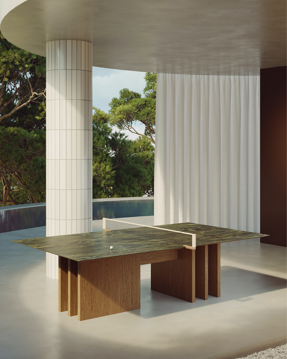 Partitina se propone a todos los efectos como elemento de uso cotidiano, es más, como elemento central del diseño de interiores. Por eso, para revestir el tablero han elegido superficies ornamentales, como el Marble Look de la colección The Top de color Verde Cipollino, Giallo Siena, Verde Aver y Verde Borgogna. Y para no dejar de lado las colocaciones horeca, también están disponibles el Saint Laurent y el Calacatta, con un aspecto más clásico, y el Travertino, con un aspecto más neutro. “La elección de los colores y las colecciones de las placas de formato grande de Marazzi The Top se basa por un lado en la combinación estética y cromática con la base de las mesas y, por otro, en la necesidad de que la bola rebote bien: hacía falta una superficie completamente lisa”. Además, gracias a las propiedades antibacterianas que aporta la tecnología Premium Puro Marazzi Antibacterial, que elimina el 99% de las bacterias y los agentes patógenos de las superficies, éstas son un lugar seguro incluso para preparar y consumir la comida.