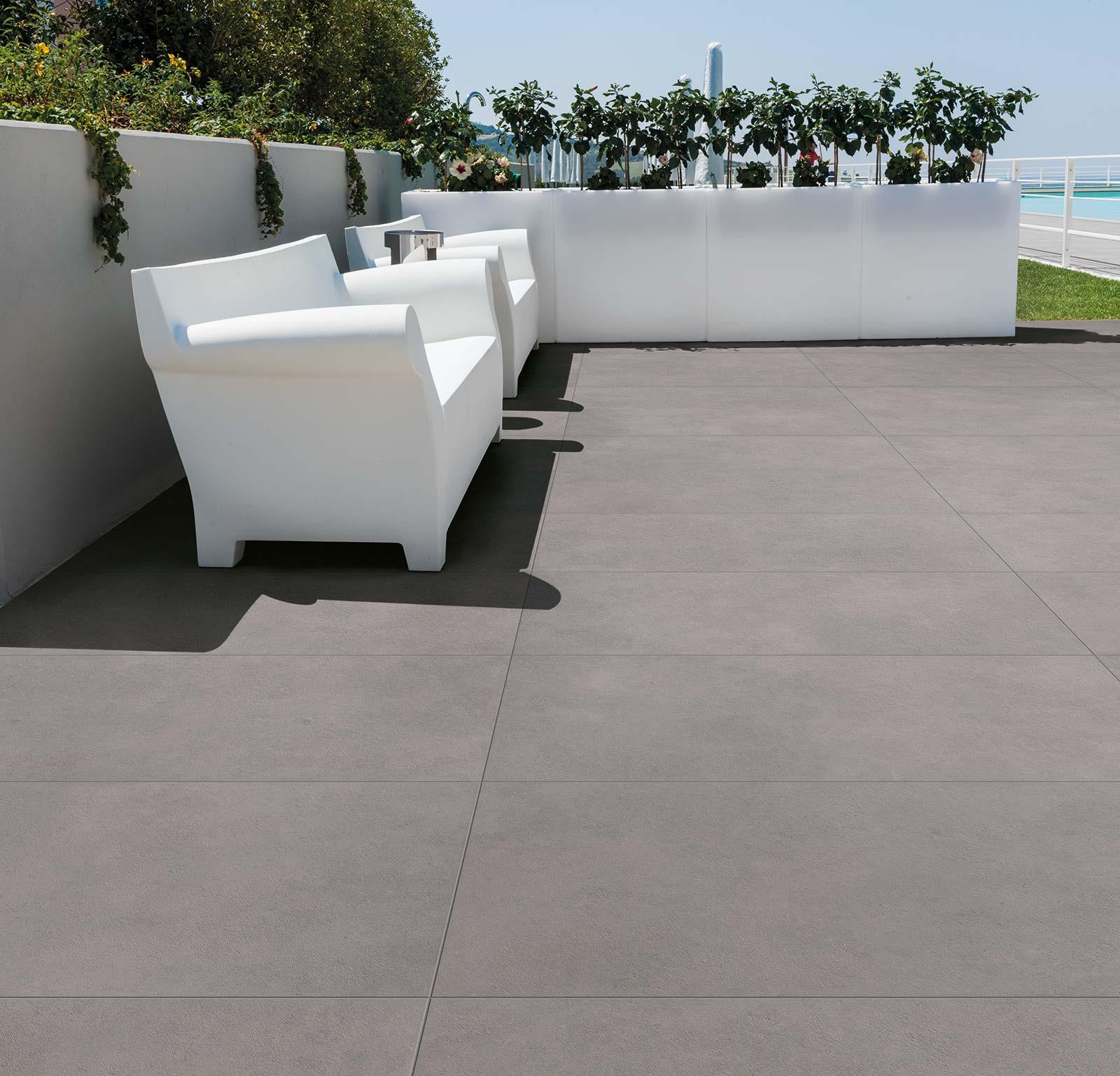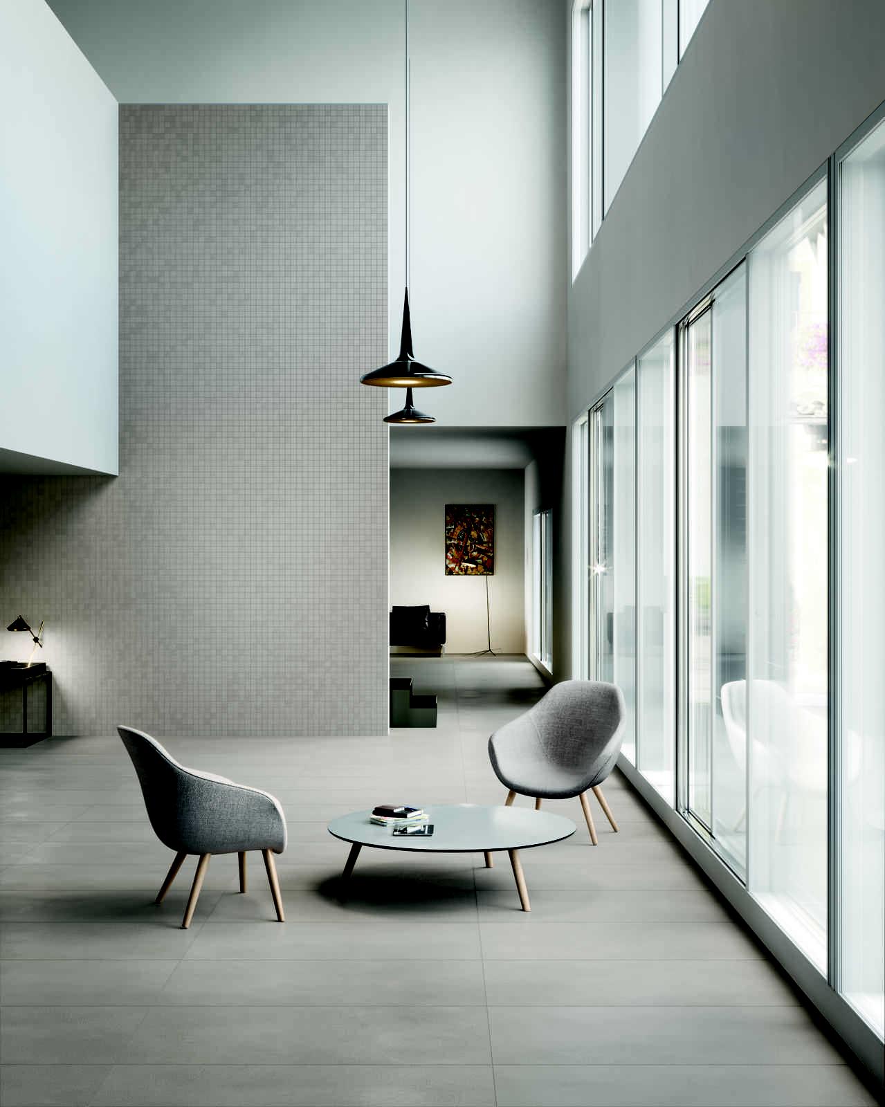 El material de base en el que se inspira es el cemento espatulado. El efecto deseado es el de una superficie muy técnica, resistente y dura, idónea incluso para aeropuertos y estaciones de metro, lo más agradable y suave al tacto posible, realizada en varios colores: este arduo desafío ha sido superado en la modernísima fábrica Marlit de Marazzi.
