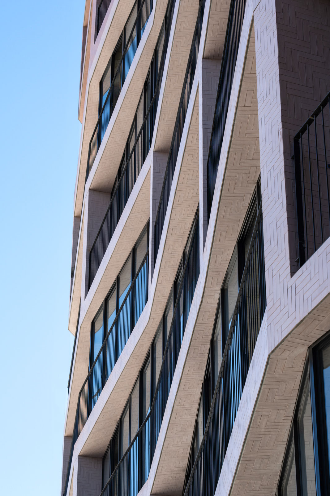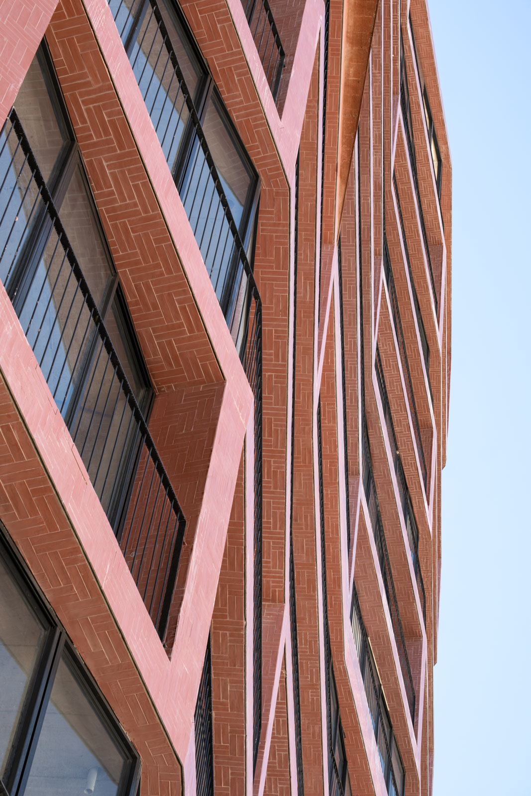 Para desarrollar esta idea de arquitectura Marazzi ha elaborado una colección personalizada: ladrillos de gres porcelánico fino monocalibre, de 9 mm de grosor y con un tamaño, especialmente concebido para este proyecto, de 6 x 24 centímetros. El producto cuenta con las certificaciones Greenguard, Declare y HPD, garantía de la procedencia de las materias utilizadas para fabricarlo, de unas menores emisiones a la atmósfera y al agua, de una información transparente para con el consumidor y de una correcta gestión al fin de la vida del producto, con la eliminación y el reciclaje de los azulejos. Una responsabilidad medioambiental totalmente acorde con la proyección del ciclo de vida del nuevo edificio.