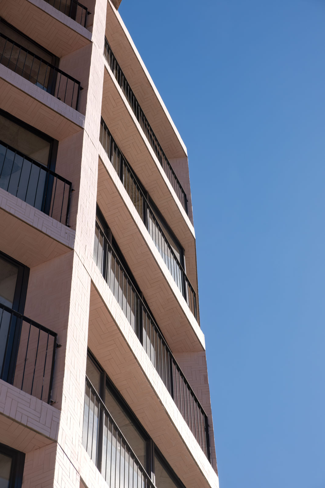 El bloque residencial, en su desarrollo en dos volúmenes que se atraviesan, forma un barrio vertical que ejemplifica un nuevo enfoque en la integración del espacio urbano con un edificio densamente habitado concebido para fomentar la idea de comunidad.
