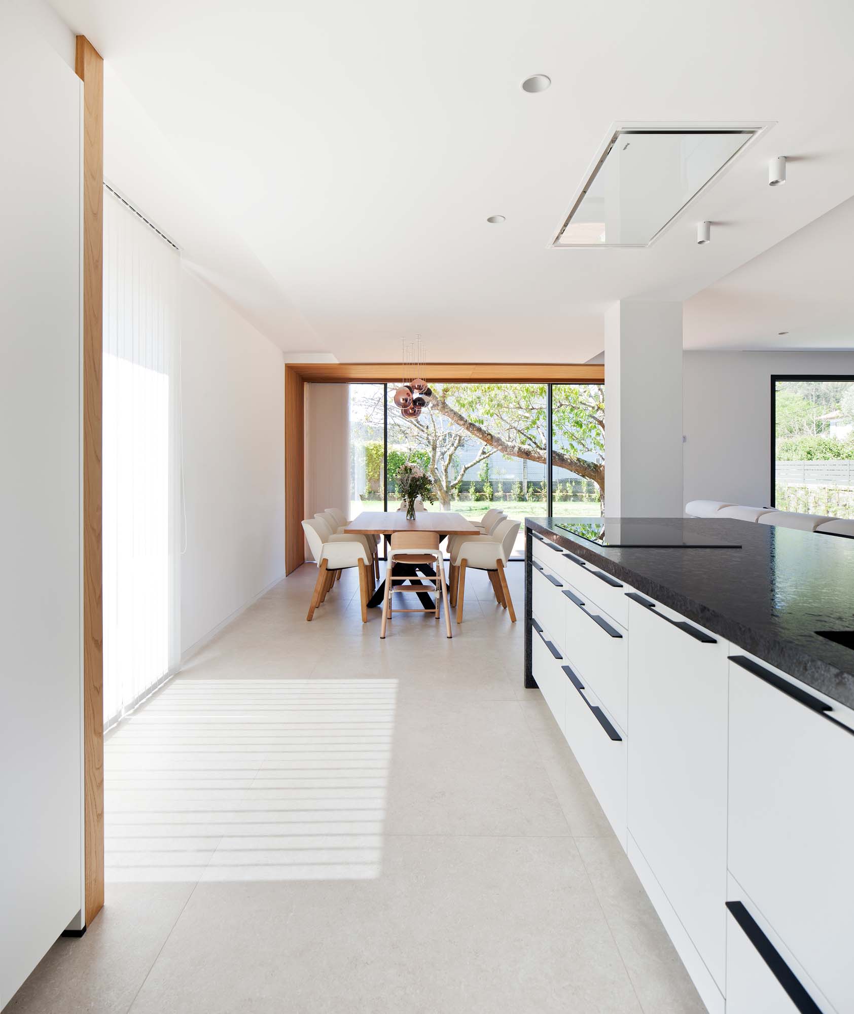 Los azulejos de gres porcelánico Mystone Limestone en el color Ivory y el formato de 120 x 120 cm se han elegido para cubrir todos los pavimentos, porque su gran tamaño, combinado con un brillo difuminado y un tono a la vez claro y discreto, aporta el toque extra de luminosidad y continuidad espacial que se quería para el proyecto.