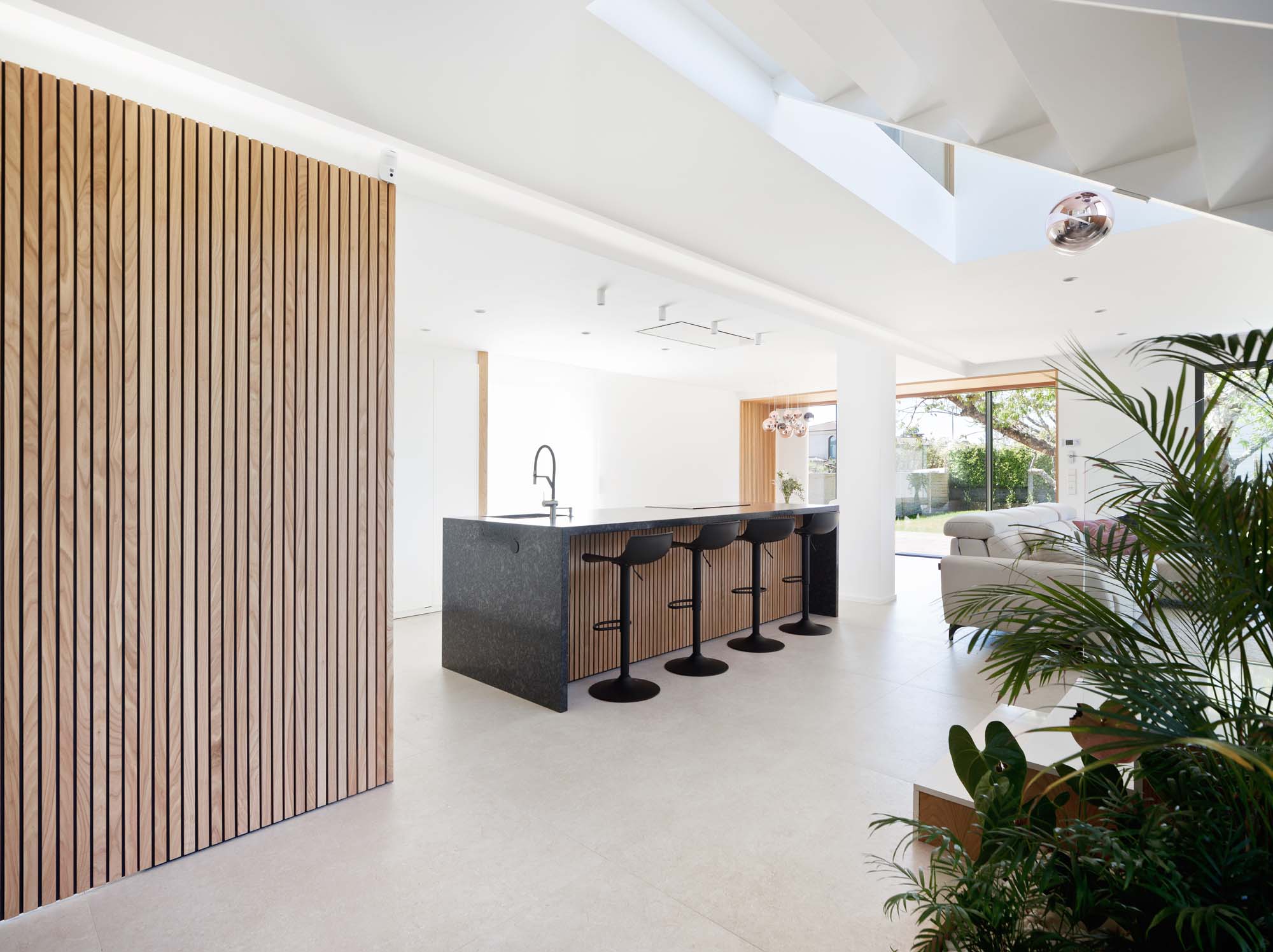 ResidencialLuminosidad y continuidad espacial en una vivienda unifamiliar reformada con tonos claros.