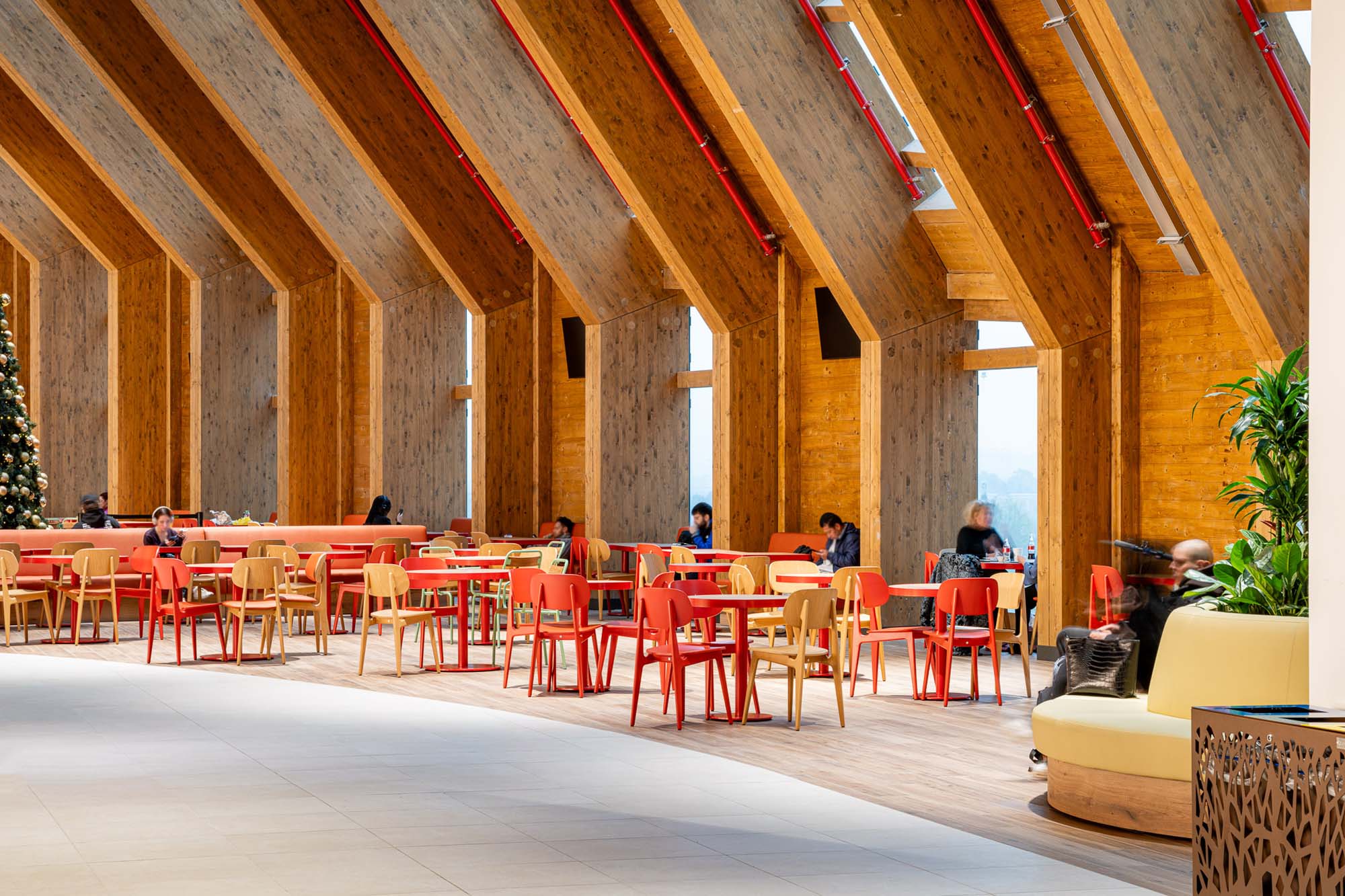 Las plazas públicas de acceso, las terrazas que crean la conexión visual entre el interior y el exterior, así como la profusa utilización de materiales naturales como la madera estructural y los pavimentos de gres porcelánico, además de la plantación de verde en numerosos espacios interiores, facilitan la conexión con los espacios urbanos sin solución de continuidad.