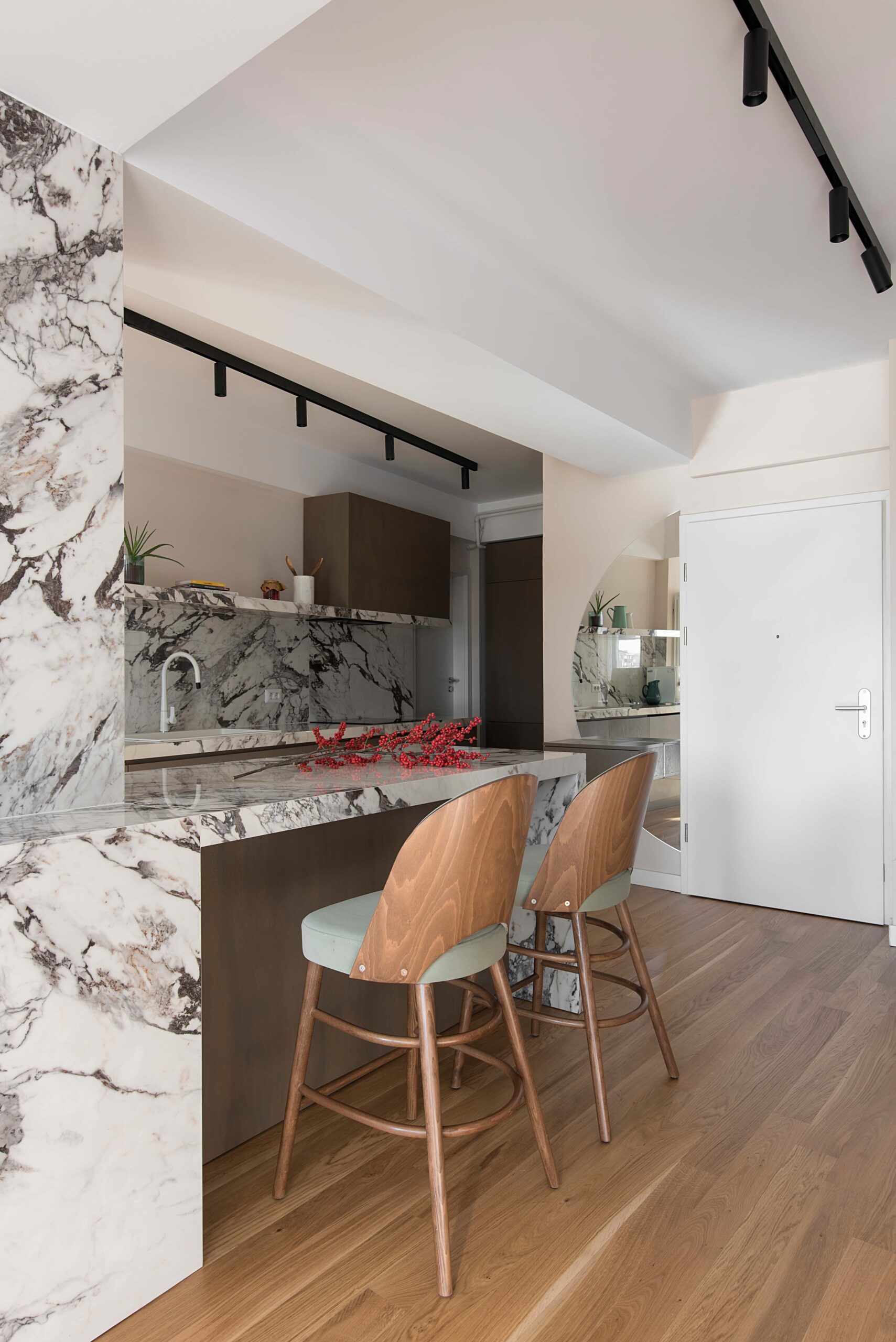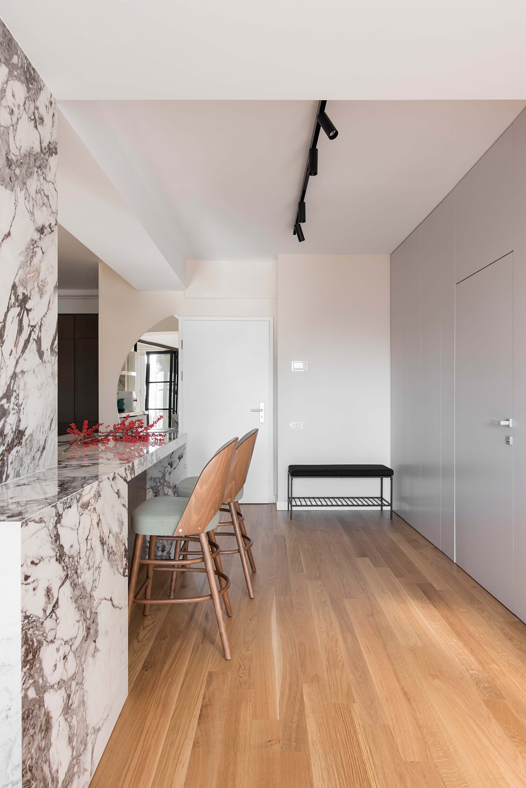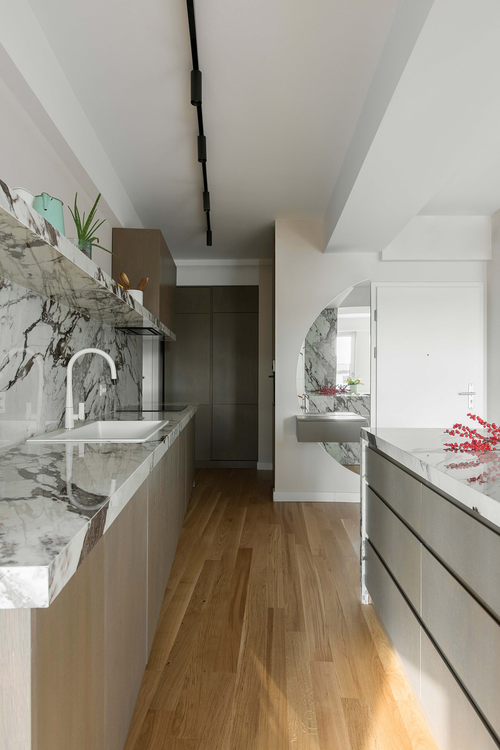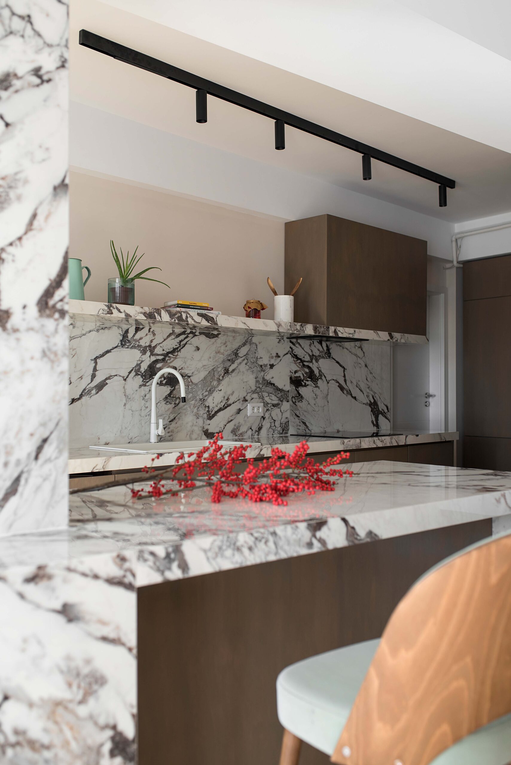 Con sus majestuosos edificios del siglo XIX mezclados con los más modernos e imponentes rascacielos, Bucarest hoy es una ciudad en notable fermento, caracterizada por una vibrante escena cultural y vivos barrios comerciales. En este entorno urbano en el que conviven la historia y la contemporaneidad la arquitecta Cristina Stroe del Laboratorul de Arhitectură ha proyectado un espacio abierto de líneas netas, paleta cromática neutra y materiales de lujo, expresión de las avanzadas tecnologías aplicadas al interiorismo. Elemento central del proyecto son las placas grandes de imitación del mármol de la colección The Top Marble Look: superficies de grandes dimensiones que proponen las tonalidades de los mármoles más nobles e inusitados del mundo, perfectas para realizar encimeras, salpicaderos, mesas y cualquier tipo de decoración personalizada.