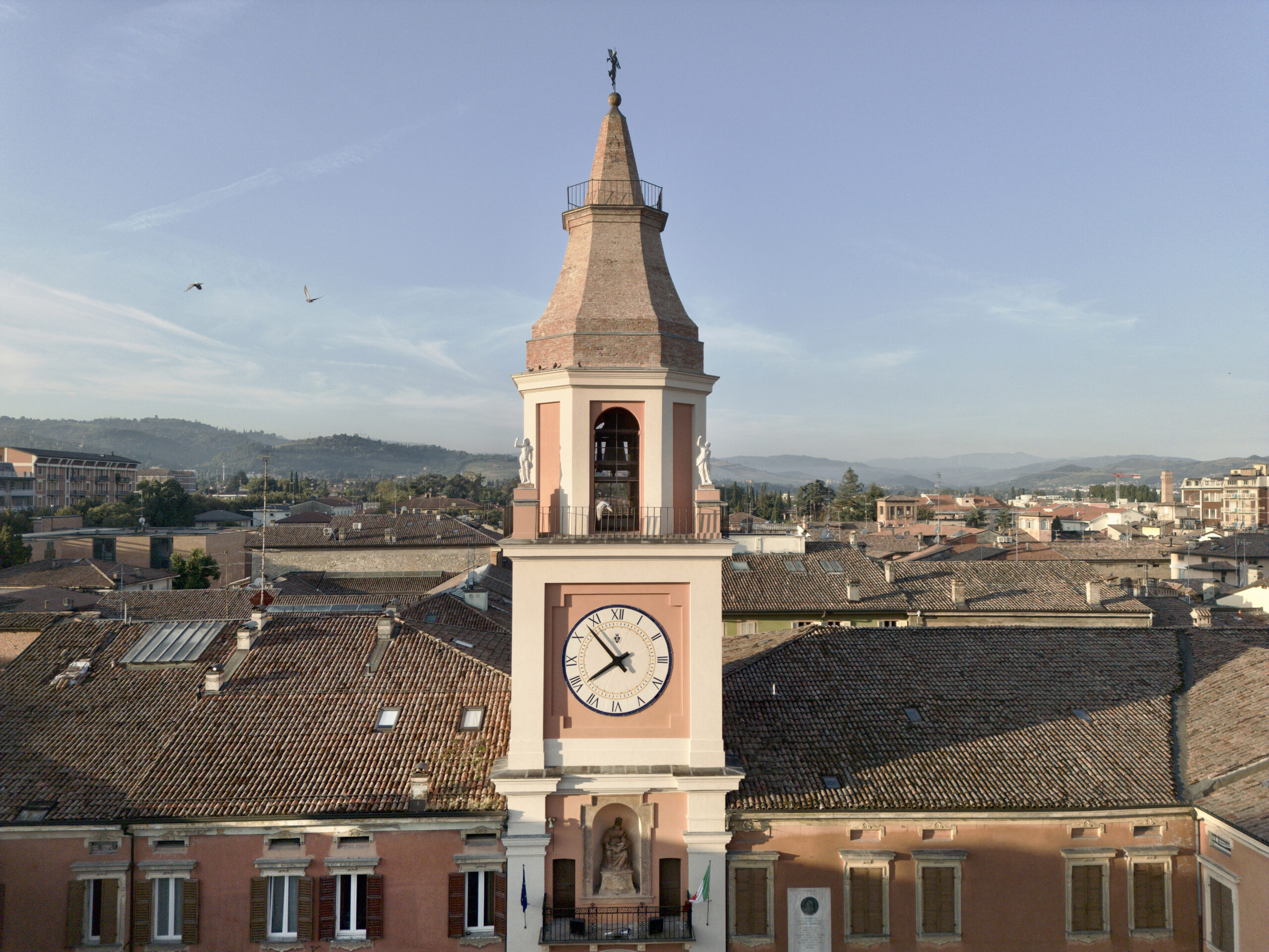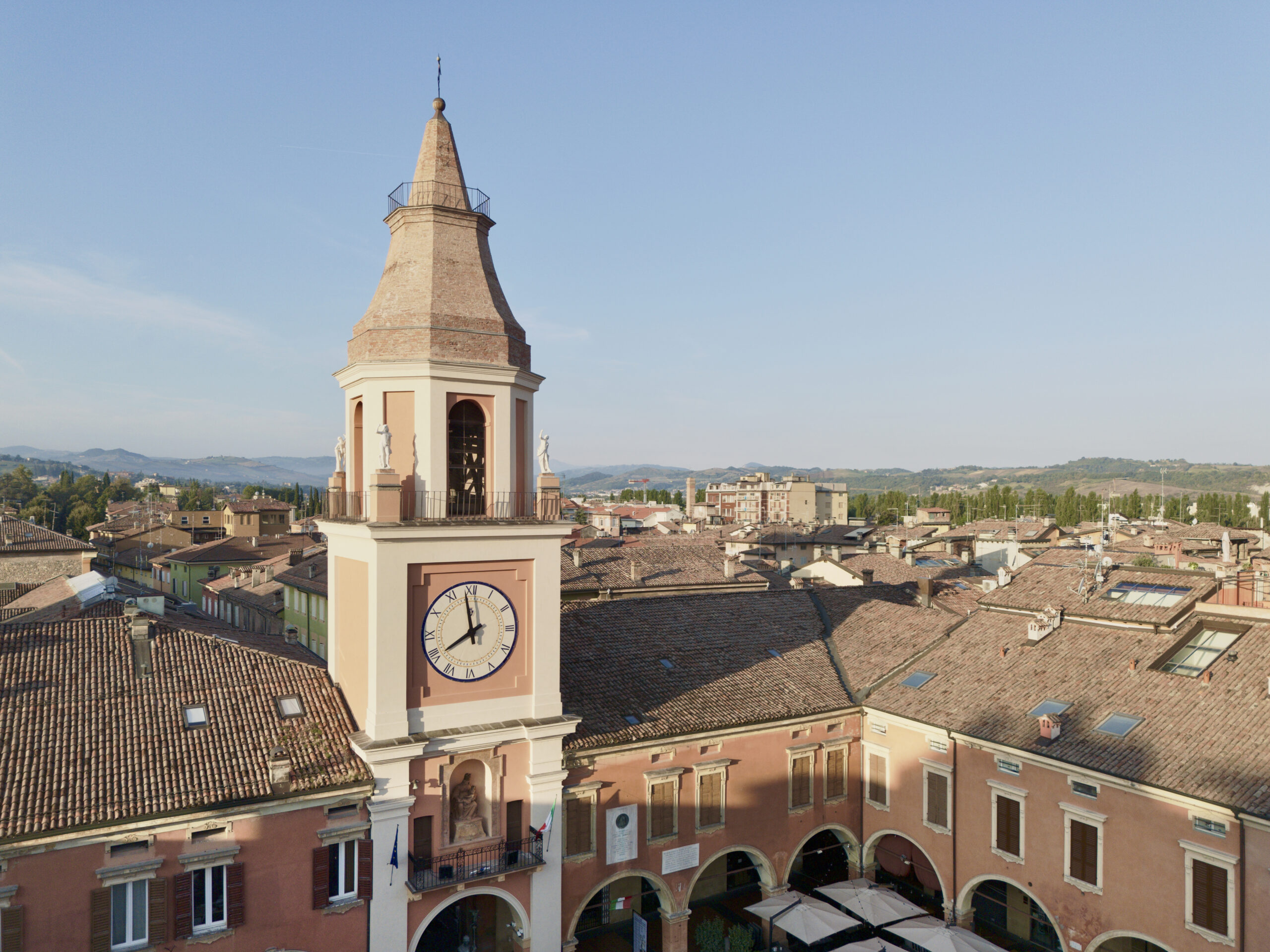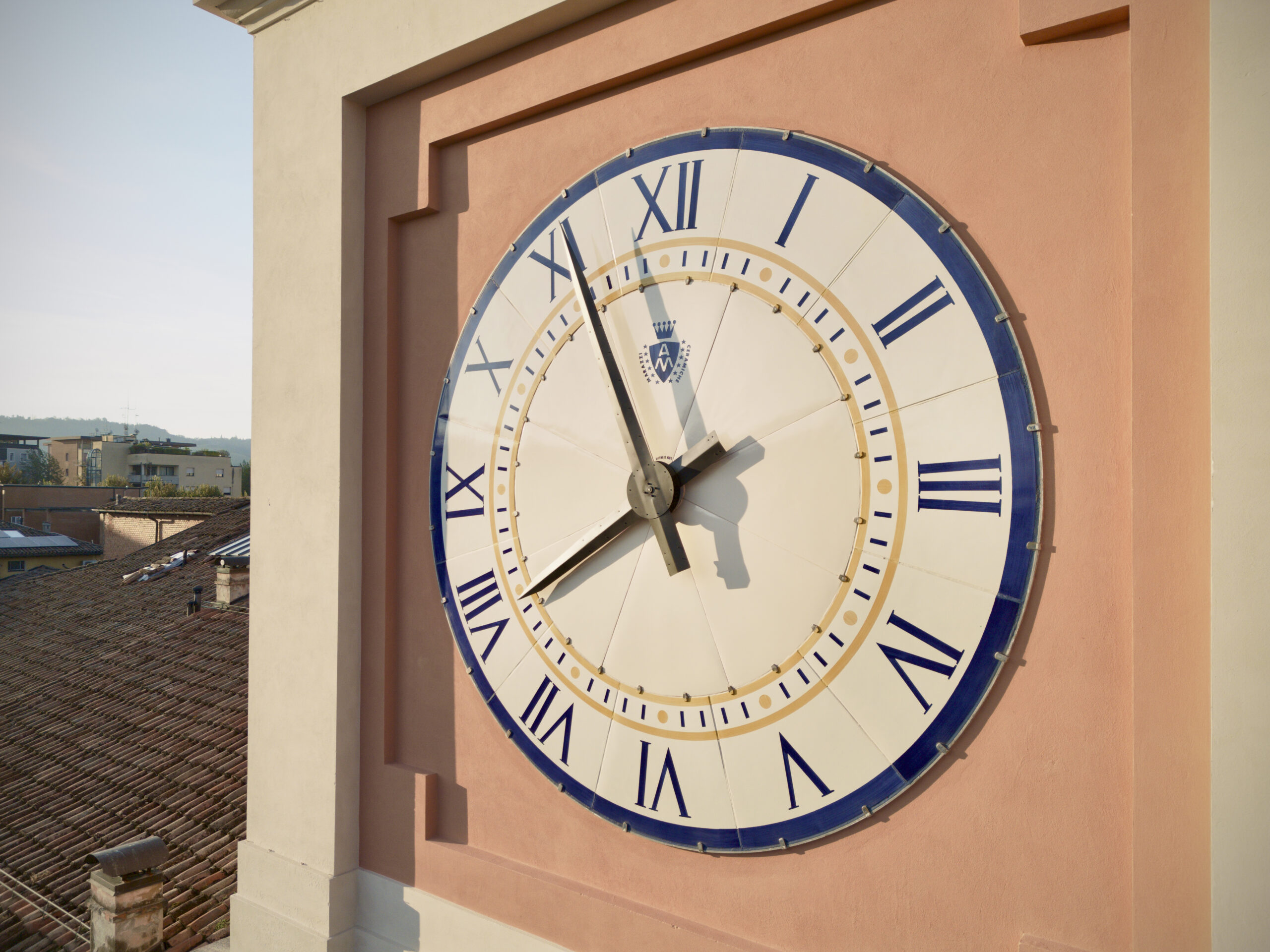La restauración de la Torre del Reloj, realizada por el Municipio de Sassuolo con la contribución del Grupo Marazzi, ha rehabilitado un elemento arquitectónico que con el tiempo se ha convertido en un símbolo de la ciudad. “Il Campanone”, edificado entre 1676 y 1680 según un proyecto del arquitecto ducal Antonio Loraghi, caracteriza fuertemente la Piazza Garibaldi, centro neurálgico de la ciudad que alberga durante todo el año mercados, conferencias, espectáculos y eventos abiertos a los ciudadanos. La Torre ha sufrido varias intervenciones por parte de diferentes arquitectos desde su creación hasta los últimos trabajos de restauración de la plaza en los años ochenta, ocasión en la que Marazzi donó el cuadrante de cerámica del reloj. Marazzi tiene un profundo vínculo afectivo con la Piazza Garibaldi, donde todavía está presente la histórica droguería que pertenecía al fundador de la empresa.