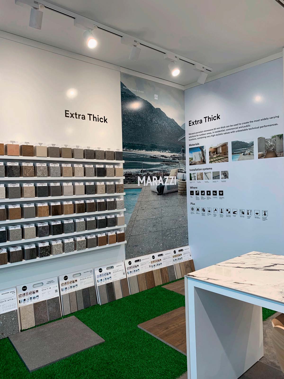 Marazzi Group exhibits its latest ceramic and stoneware collections in its showroom in Dubai’s Design District. A vast assortment of porcelain stoneware, single-fired and mosaic products is available in a variety of sizes – from the smallest and most traditional up to large slabs – colours, thicknesses and surfaces, for both the home and the contract sector, including slimline, lightweight wall coverings and extra-thick technical stoneware pavings for outdoor use. The showroom also contains the Marazzi The Top selection of stoneware slabs for the creation of worktops, backsplashes, tables, cabinet doors and bespoke furnishing solutions for residential and commercial locations.